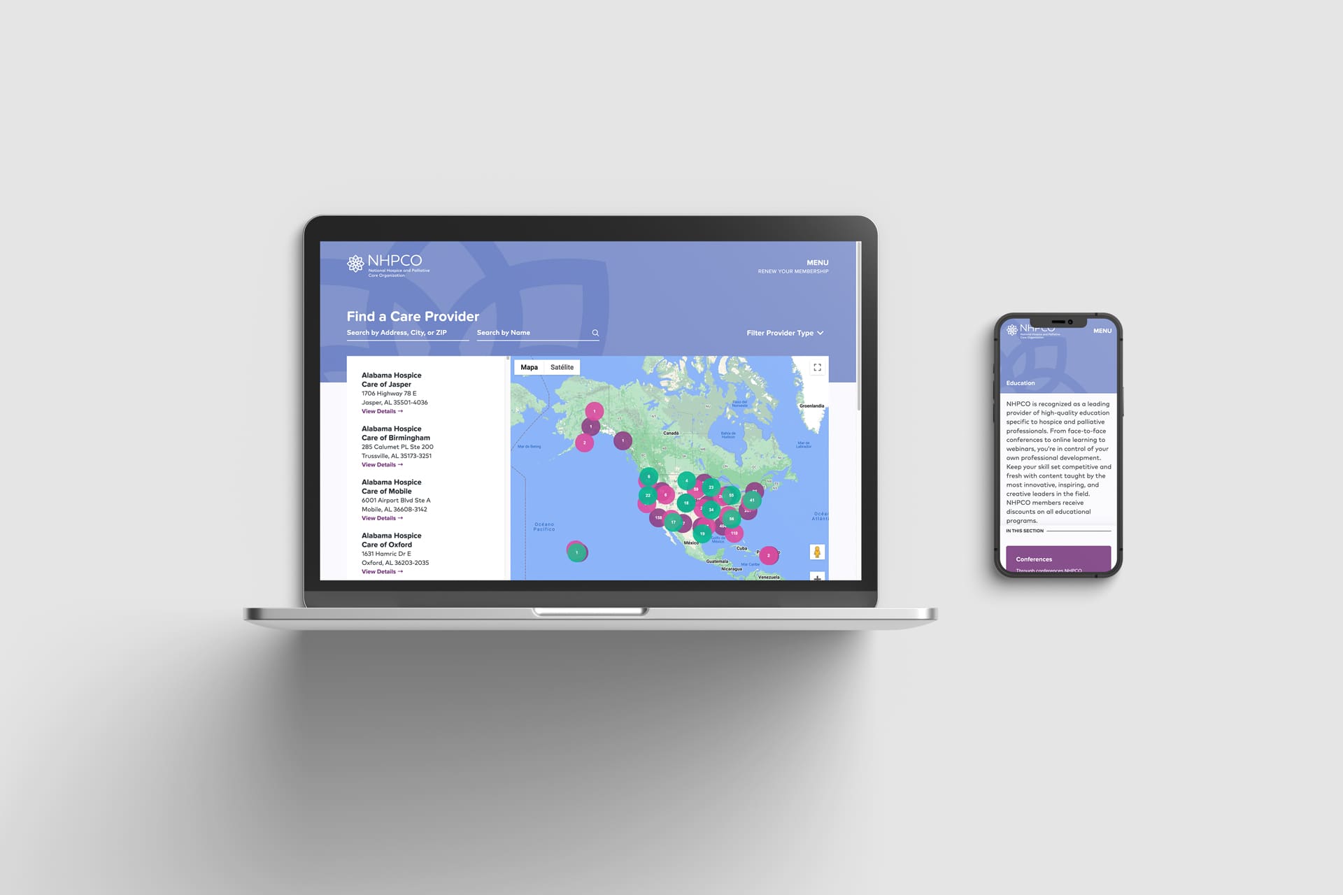 NHPCO had some structural problems and was not the most user-friendly. They also had a very complex and exhaustive sitemap for members and non-members. Our main goal was to gather all the different resources for both members and non-members in an organized and concise way that would be easier to navigate. Additionally, we updated the find a care provider section with almost 4000 entries, allowing different search criteria and a distance radius to ensure users see providers within driving distance.