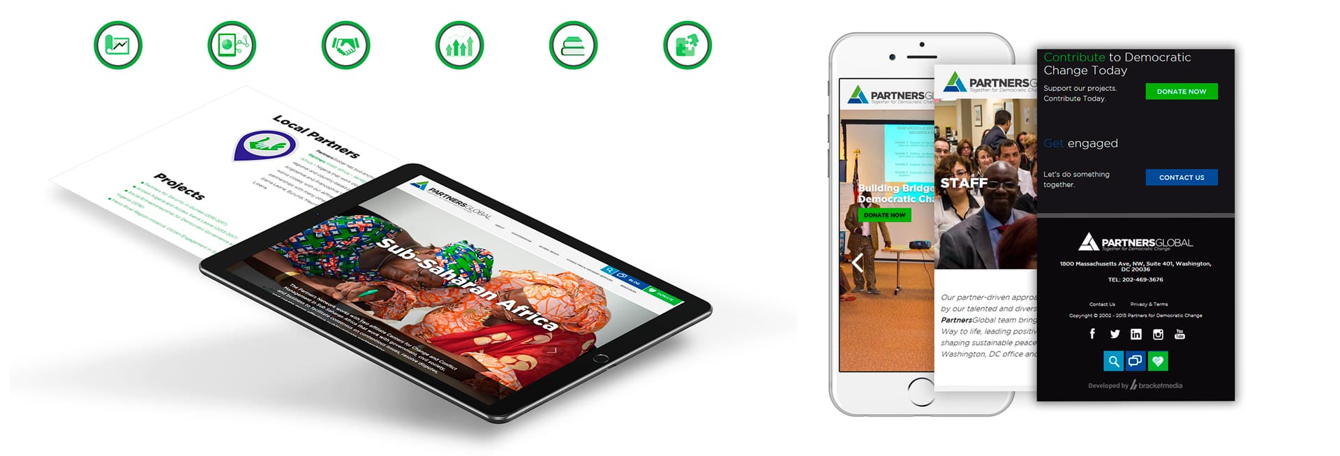 Partners Global approached us to help develop a more modern look and feel to their institutional website after they went through a rebrand, having updated their logo and graphics. We needed to showcase their 22 centers along with the mother institution in DC in order to creatively showcase the diversity of their work across 5 continents.